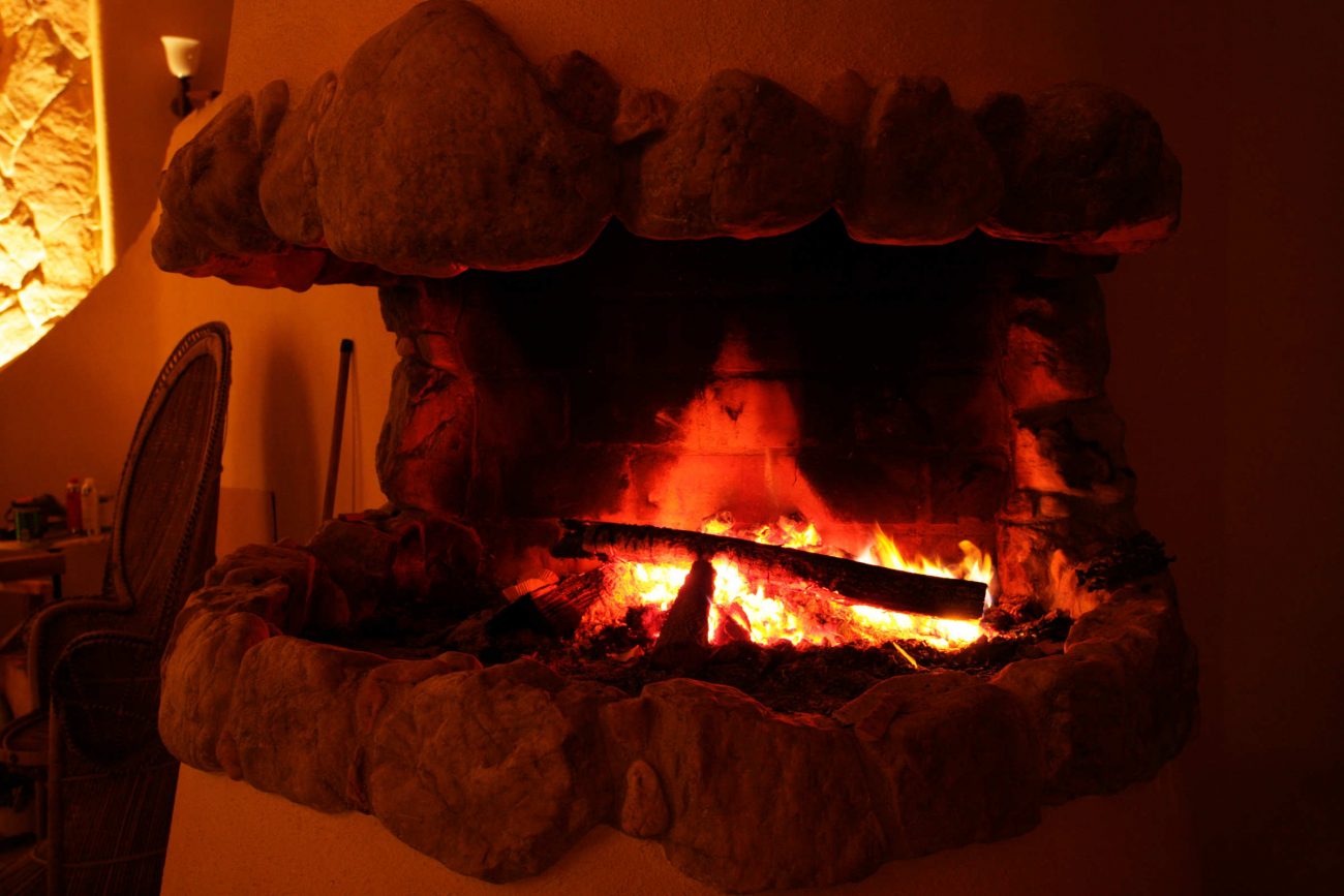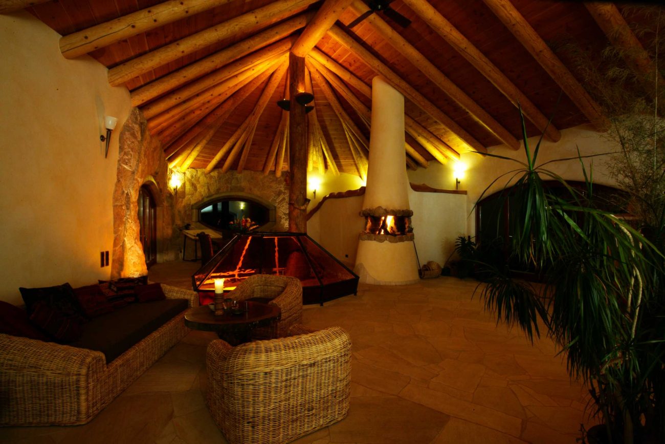 DRINNEN, befindet sich der Seminarraum geschützt hinter den dicken Felswänden des Flinthouses.